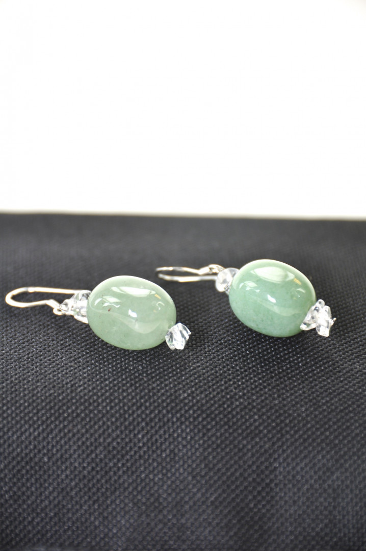 Stor nugget i aventurin med små chips i klar kvarts hengende i sølvkrok.