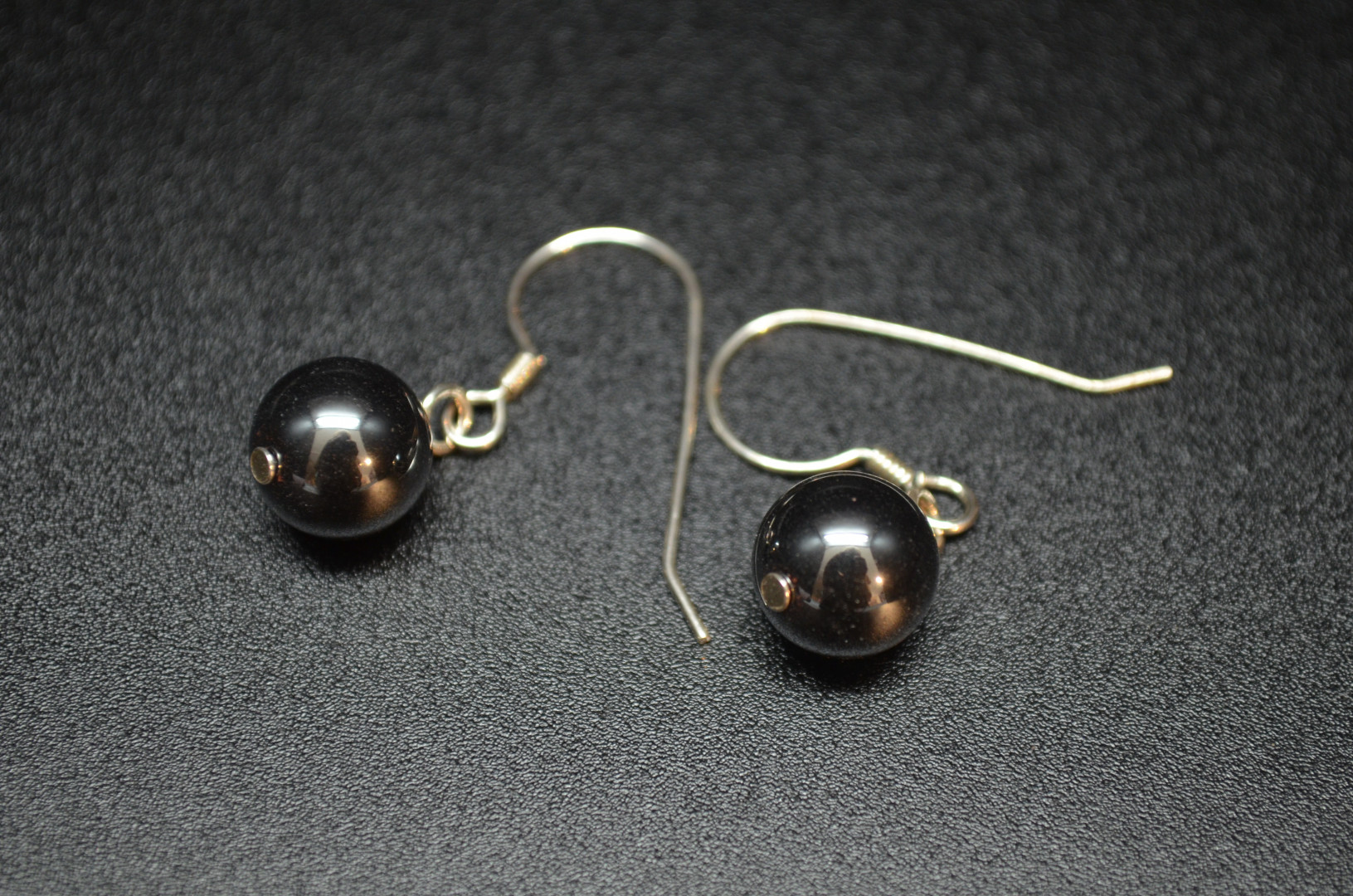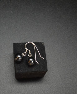 Øredobbe med 10mm kule i hematitt med sølvkrok.