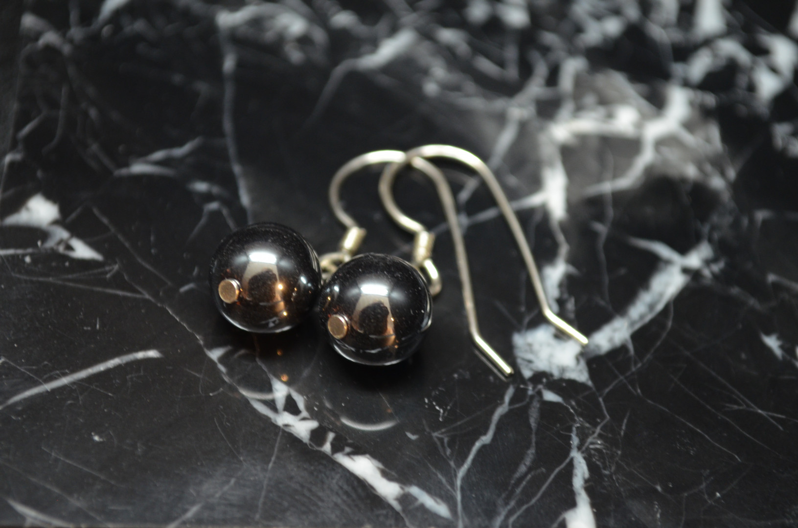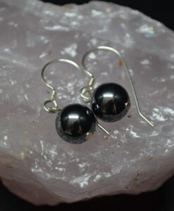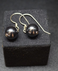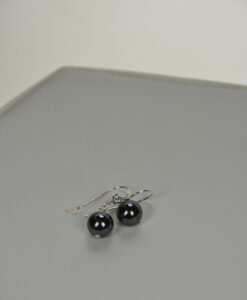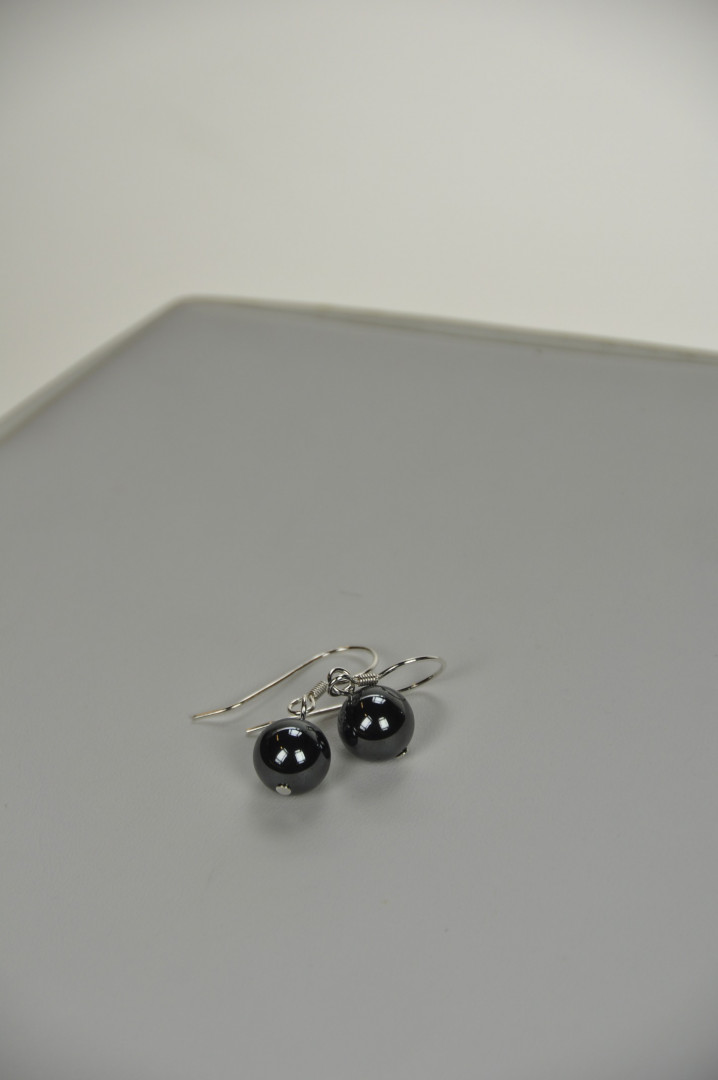 Øredobbe med 8mm hengende kule i hematitt med sølvkrok
