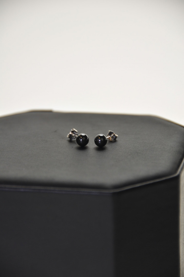 Øredobbe i hematitt med 6mm kule og sølvstikk.