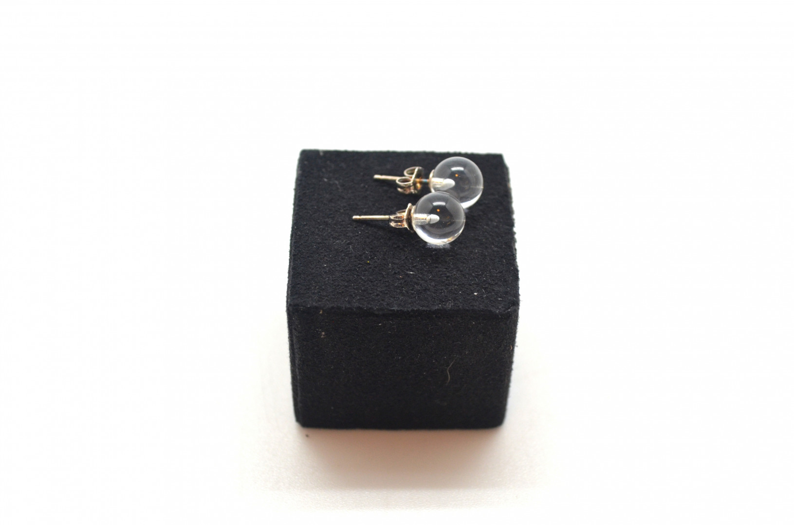 Ørepynt med 8mm kule i klar bergkrystall med sølvstikk.