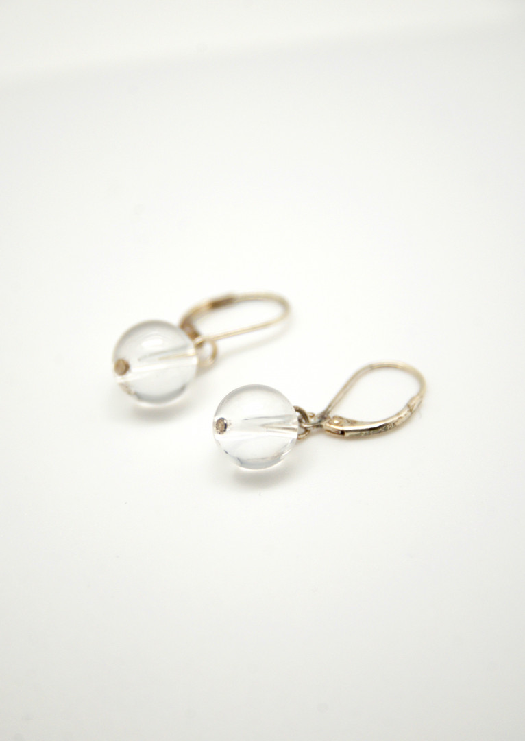Ørepynt med 10mm kule i klar kvarts og krok med enkel og sikker lås i sølv.