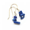 Flott, kraftig ørepynt med 20mm blå lapis. Stenen ligger i sølvkasse og har sølvstikk med spesiell lås som hindrer øredobben i å falle fremrover. Sitter godt på øret.