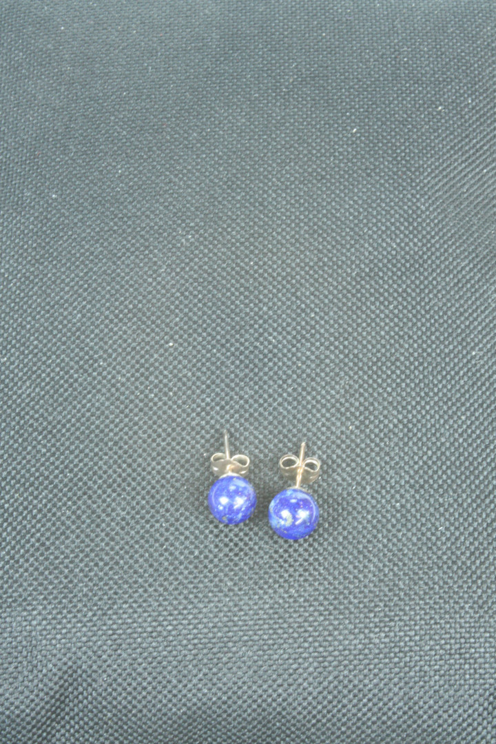 Ørepynt 8mm kule i lapis med sølvstikk.