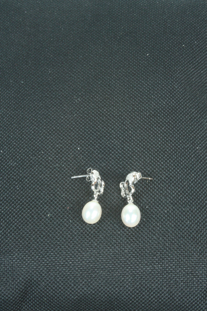 Ørepynt med hvit perle festet i en sølv sommerfugl.