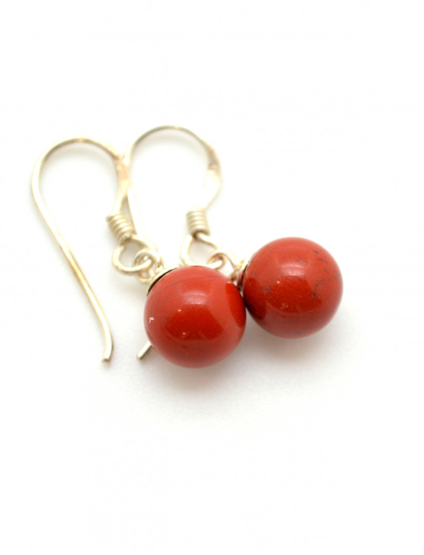 Øredobbe med 8mm hengende kule i rød jasper med sølvkrok