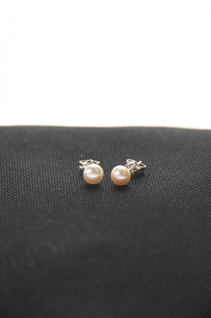 Lekre, rosa perleørepynt med sølvstikk. ca 9mm.