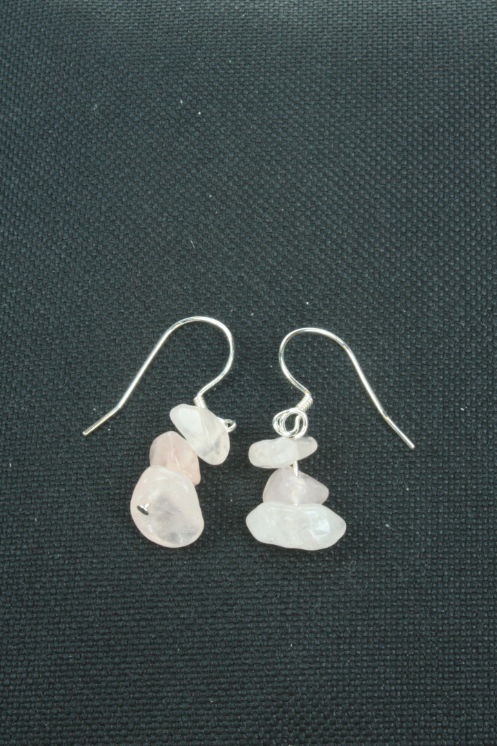 Kraftige chipsørepynt i sølvkrok med Rosa kvarts