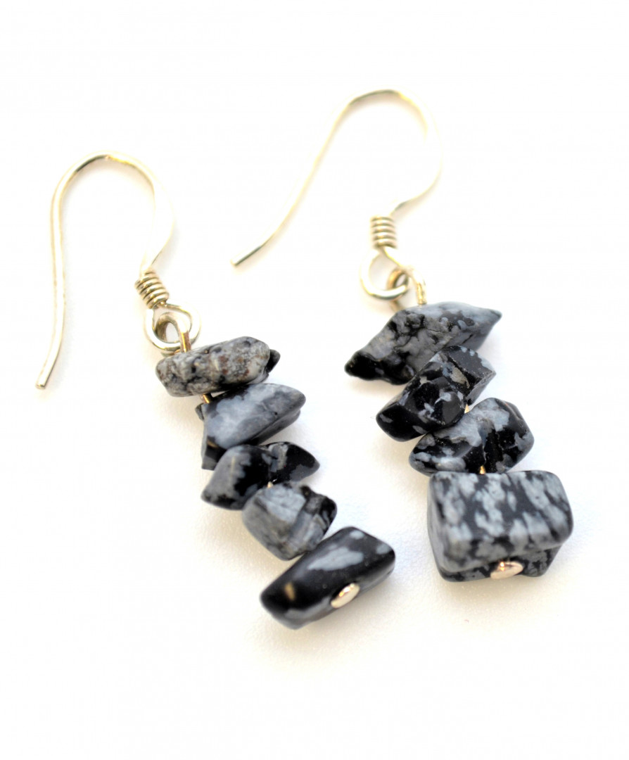 Ørepynt med chips i sort og hvit snowflake med sølvkrok.