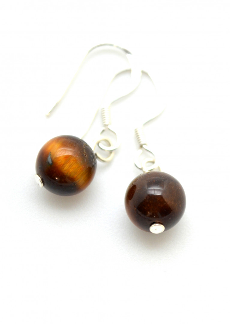 Ørepynt med 8mm hengende kule i tigerøye med sølvkrok