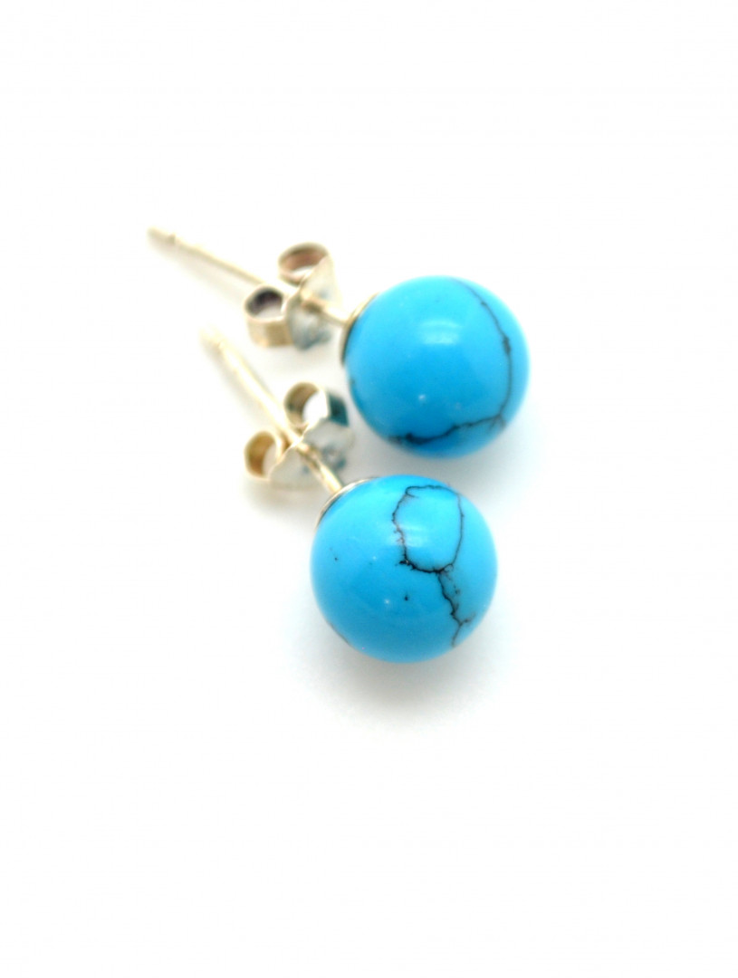 Øredobbe med 8mm kule i turkis med sølvstikk.