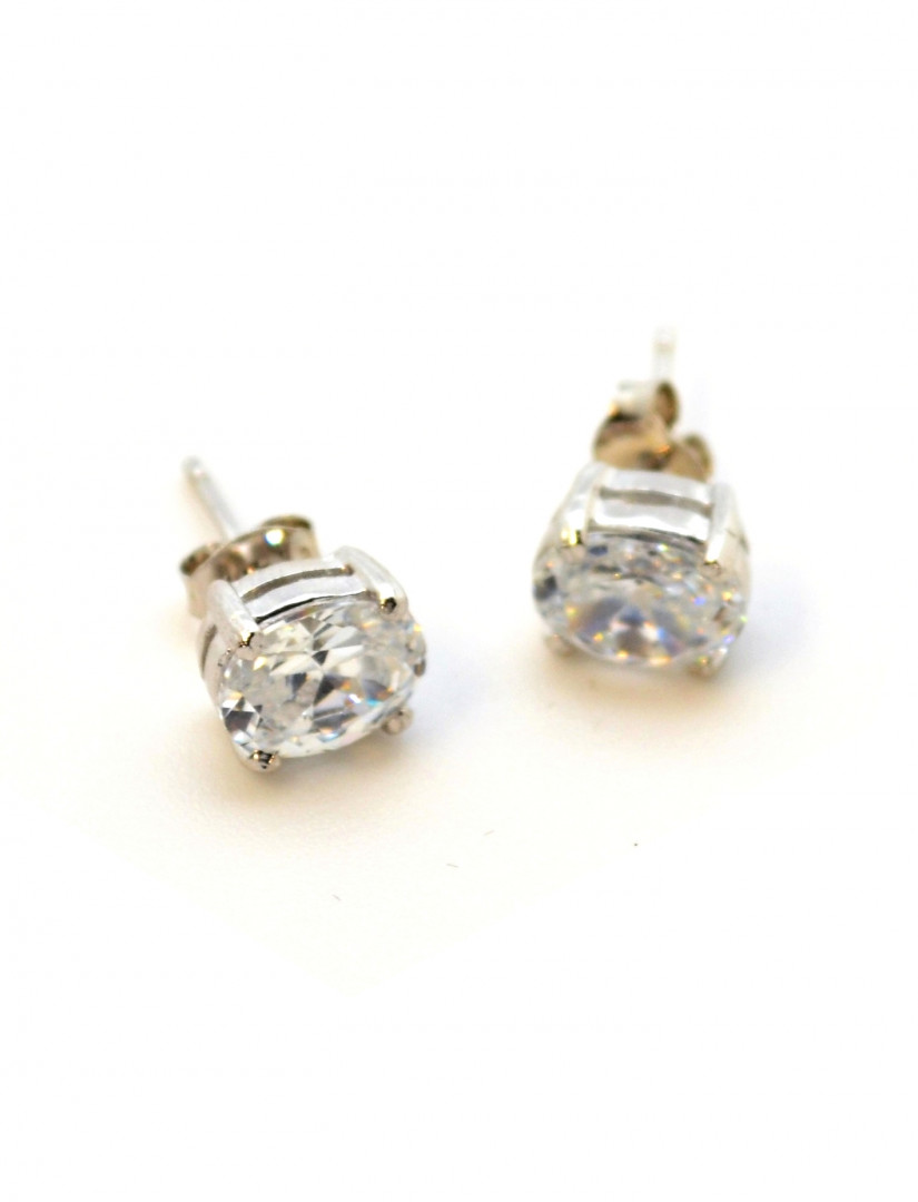 Skinnende, oval zirkonørepynt med sølvstikk.