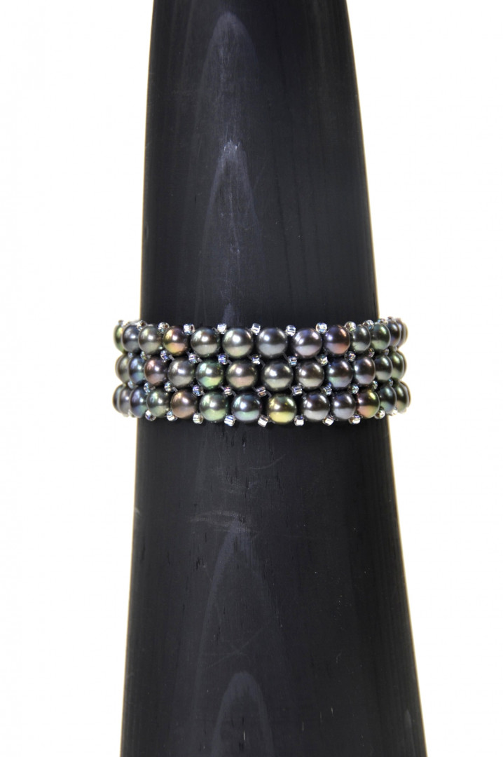 Elastisk armbånd med 3 rader i lilla, flate perler