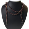 Sort lærarmbånd med små «potetformede», hvite perler. Armbåndet har 2 størrelser som kan reguleres med en metallknapp.
