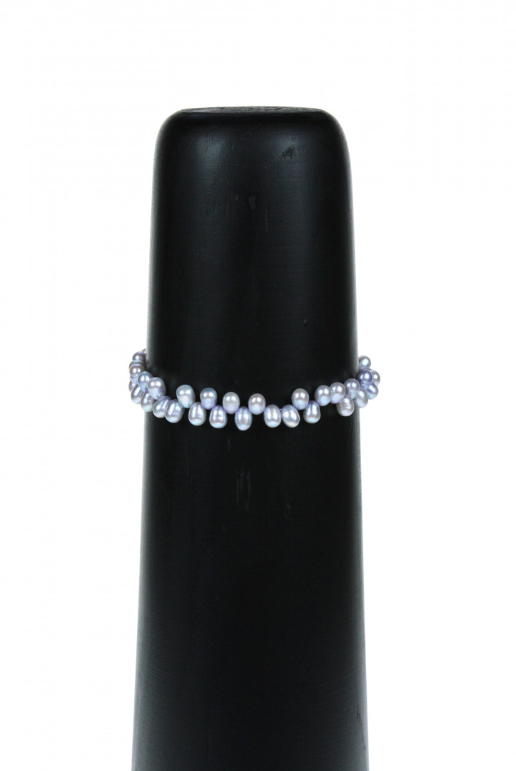 Lett, elastisk armbånd med dråpeformede perler i lys grå.