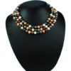 Langt perlekjede i hvitt, grønt og sølv. Det er knute mellom hver perle. Kjede kan tas en eller to ganger rundt hodet eller benyttes som et bredt armbånd.