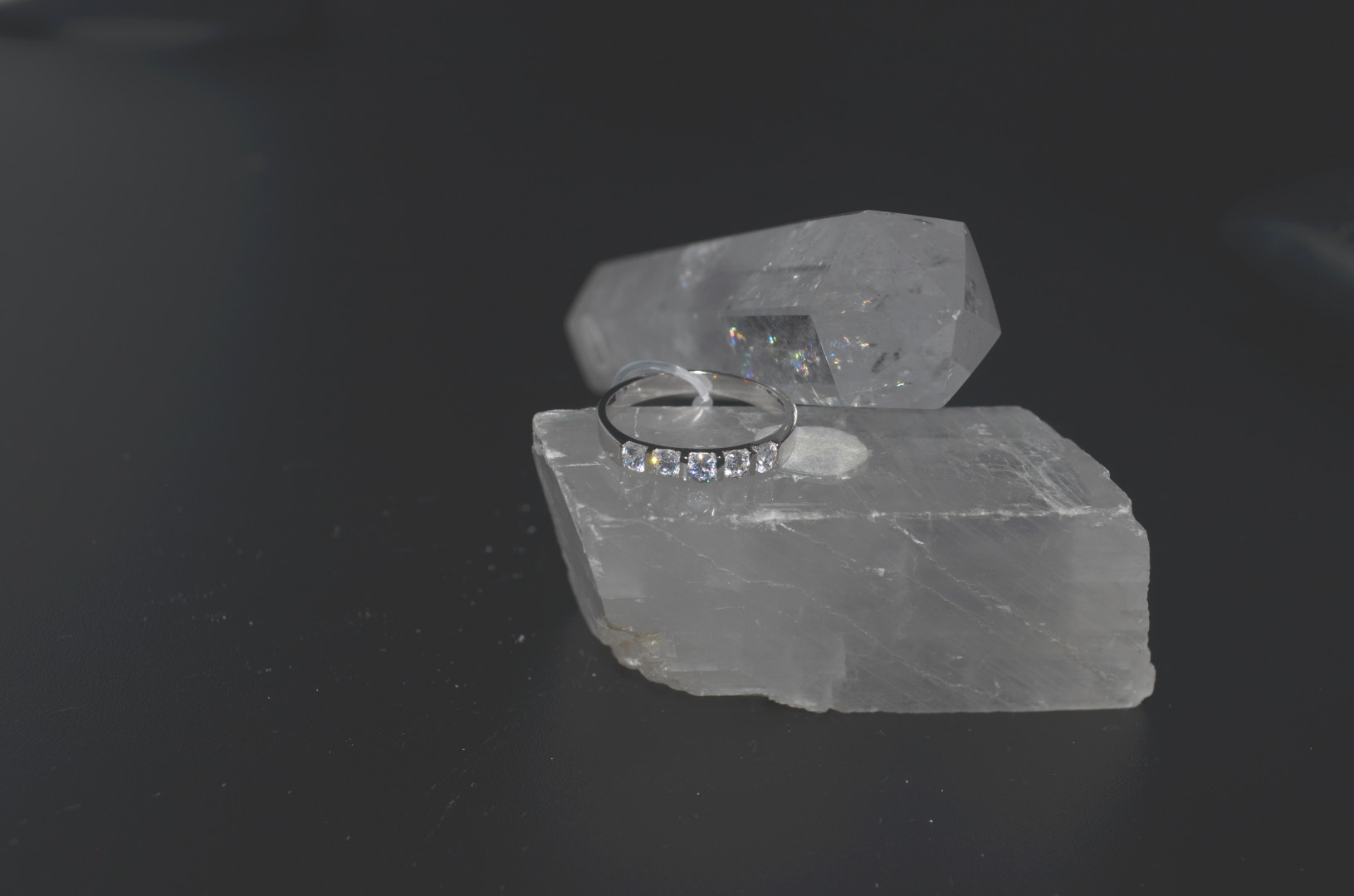 Zirkonring med 5 slipte sirkoner i sølvring. 56mm i omkrets.