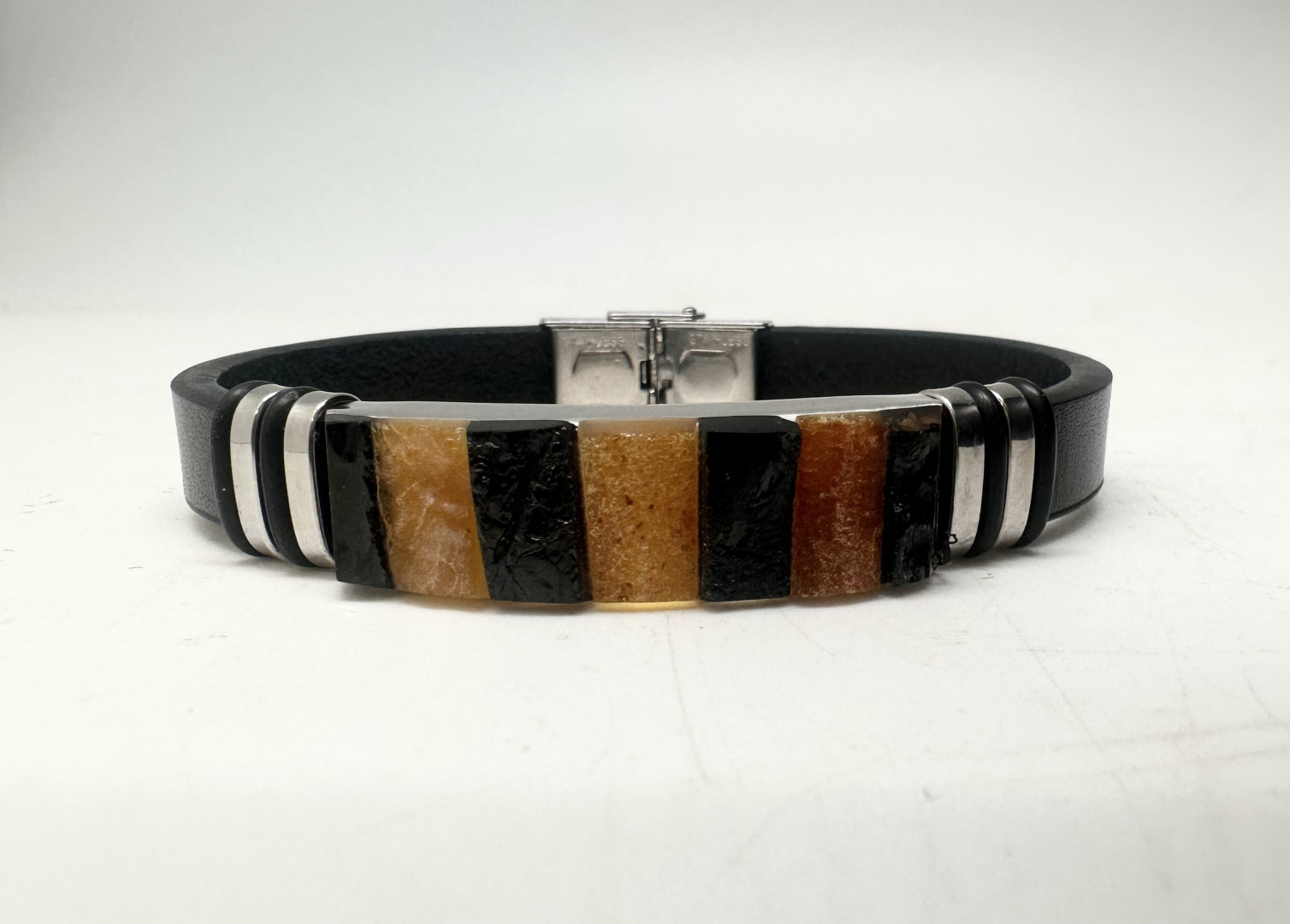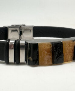 Lærarmbånd med oransje og sort Rav