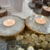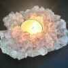 Telys med flotte kvartskrystaller som er klare og glitrende når telyset tennes.