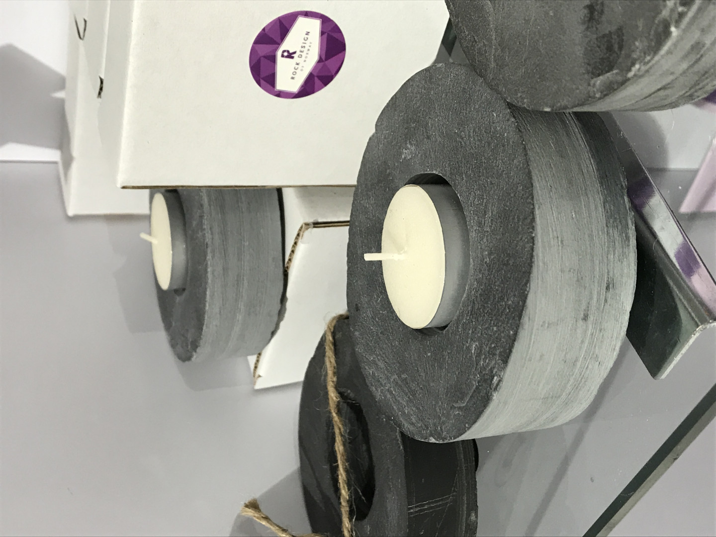 Telysholder i sort skifer med gummiknotter under. Passer alle typer te-lys.